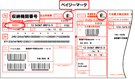 払込みされる税金・料金の払込書(納付書)に記載されている「収納機関番号」を入力してください。 「収納機関番号」の記載場所は下記の払込みされる税金・料金の種類に該当する払込書(納付書)を参照ください。