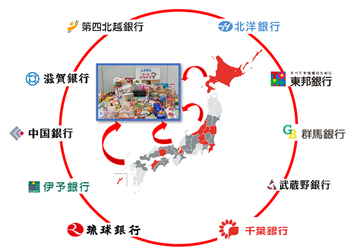 本取り組みは「TSUBASAアライアンス」の連携施策として実施したものです。回収した食品は全10行合計で1,458㎏に上り、各行を通じて全国各地のフードバンクや社会福祉協議会などへ寄付しました。