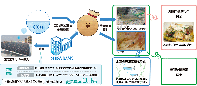 <当行の受賞理由>地域社会の課題(琵琶湖の環境問題)に対する各活動にストーリー性を持たせた「“いきものがたり”活動(※)」の展開と、環境対応型金融商品の先駆的な開発、提供による「環境金融」の推進を通して、役職員の環境保全意識の向上に、長年にわたり取り組んできたことが評価されたものです。
