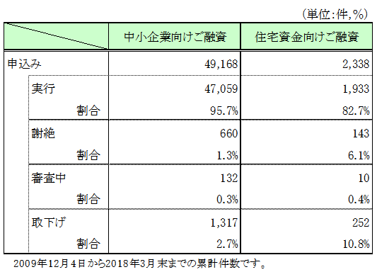 当行は、2018年3月末日時点でのご融資の条件変更等の対応実績を以下の通り公表しました。