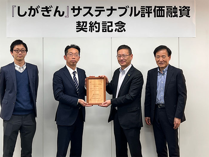 『しがぎん』サステナブル評価融資契約の記念盾贈呈の様子