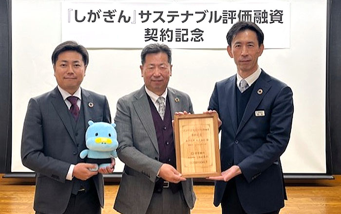 『しがぎん』サステナブル評価融資契約の記念盾贈呈の様子