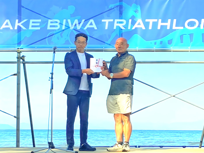 当行は、「LAKE BIWA TRIATHLON 2024」(以下、同大会)のカーボンオフセット(※1)開催に協力しましたので、お知らせします。10月20日の大会当日、「びわ湖カーボンクレジット」の贈呈式も行われました。