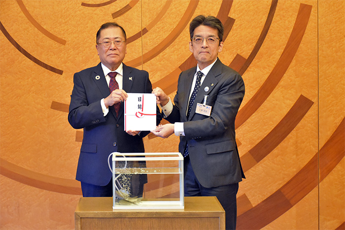 当行は、11月19日(火)、寄付スキーム「未来よし+(プラス)」(※1)を通じて、公益財団法人滋賀県水産振興協会(草津市)の「ニゴロブナ放流事業」(※2)へ100万円を寄付しました。
