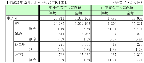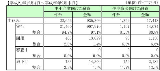 滋賀銀行は、平成25年9月末日時点での金融円滑化への取組実績を以下の通り公表しました。