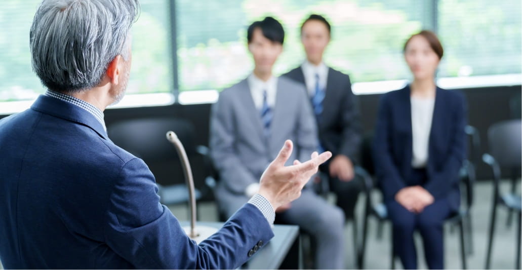 一人ひとりの成長を促すため、外部研修への派遣を積極的に実施。マネジメント層を対象にした「営業マネジメント塾」を新たに開講し、マネジメント人材の育成に取り組んでいます。