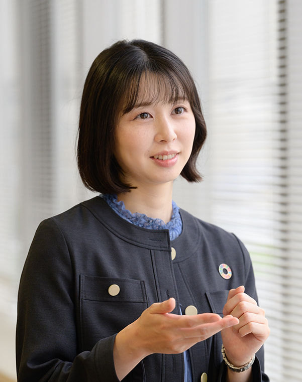 人々の生活や経済活動の根幹となるお金を扱う業務を通じて、地域と密接に関わり、当行で働くことが社会貢献につながると考えたからです。また、主体的なキャリア形成をサポートする環境が整っていることも魅力でした。入行時は全員が同じスタートラインに立ち、数年後に総合職と特定職のいずれかを選択。自分が希望する職種や部署に応募できる人材公募制度も導入しています。私自身、支店で渉外業務を経験したのち、デジタル推進室への挑戦を希望しました。